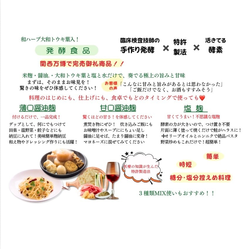 奈良県宇陀市産の大和当帰葉・麹を使用した、特別な塩麹。